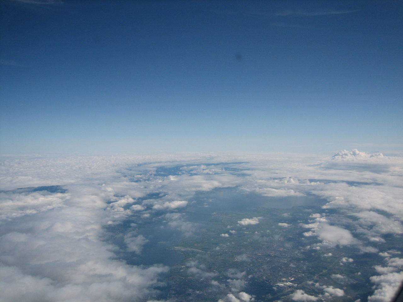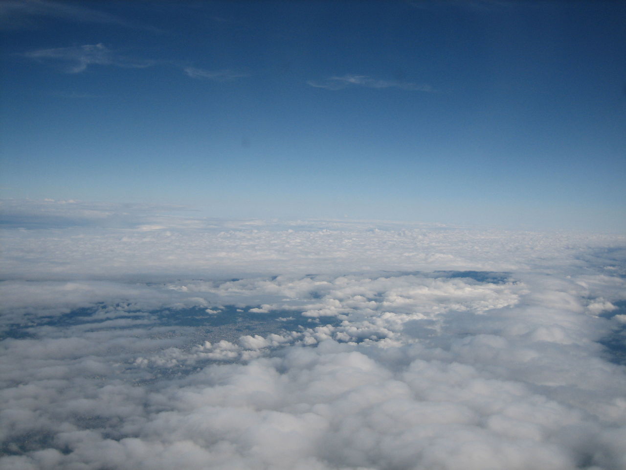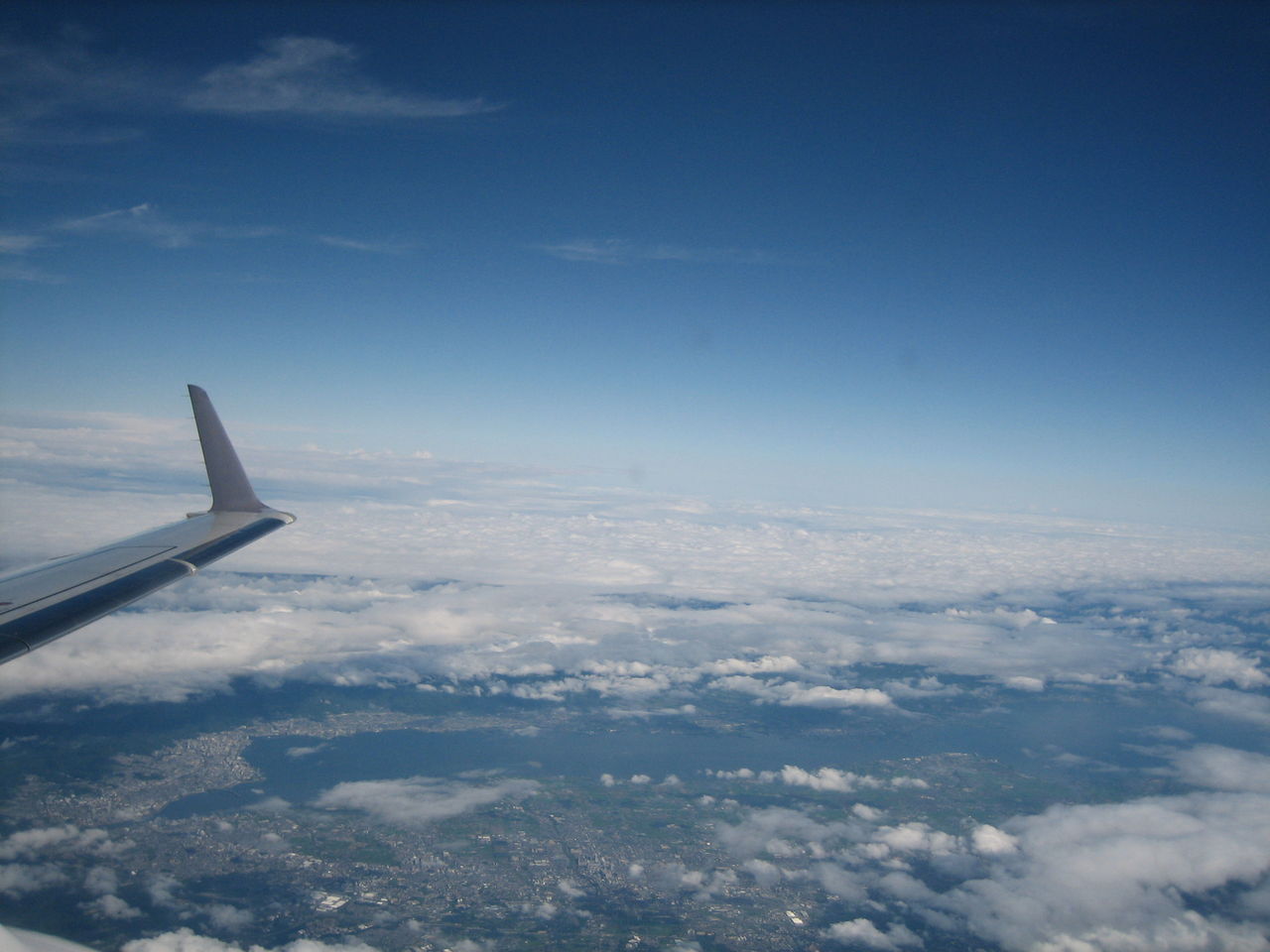 秋晴れの街に出て、ビルの隙間から空を見上げると、